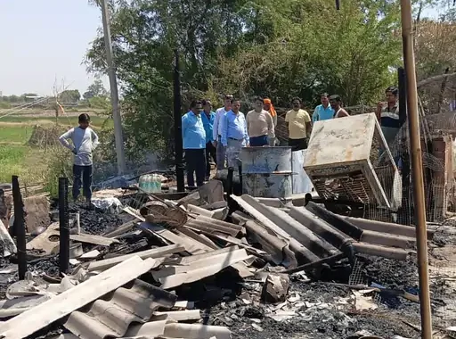 दुकान में लगी आग, डेढ़ लाख का सामान जला:दुकानदार की पत्नी झुलसी; दंपति ने प्रशासन से मुआवजे की मांग