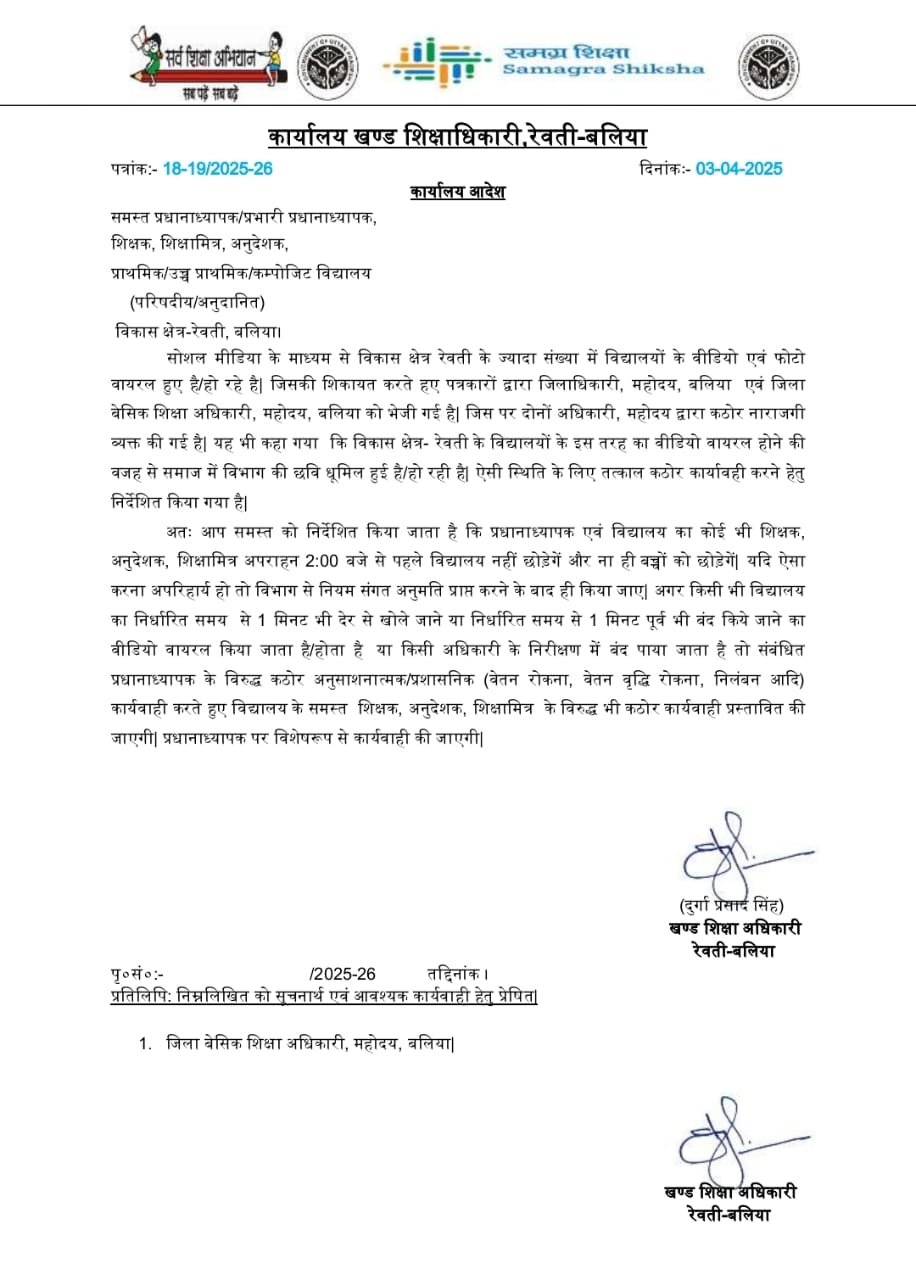 योगी सरकार के सपनो पर पानी फेर रहे है शिक्षा क्षेत्र रेवती के प्राथमिक विद्यालय के अध्यापक व खण्ड शिक्षा अधिकारी