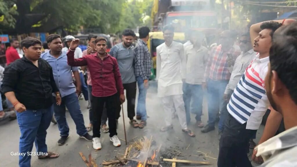 भाजपा युवा मोर्चा फरीदपुर नगर की टीम के द्वारा राहुल गांधी की शव यात्रा निकली गई