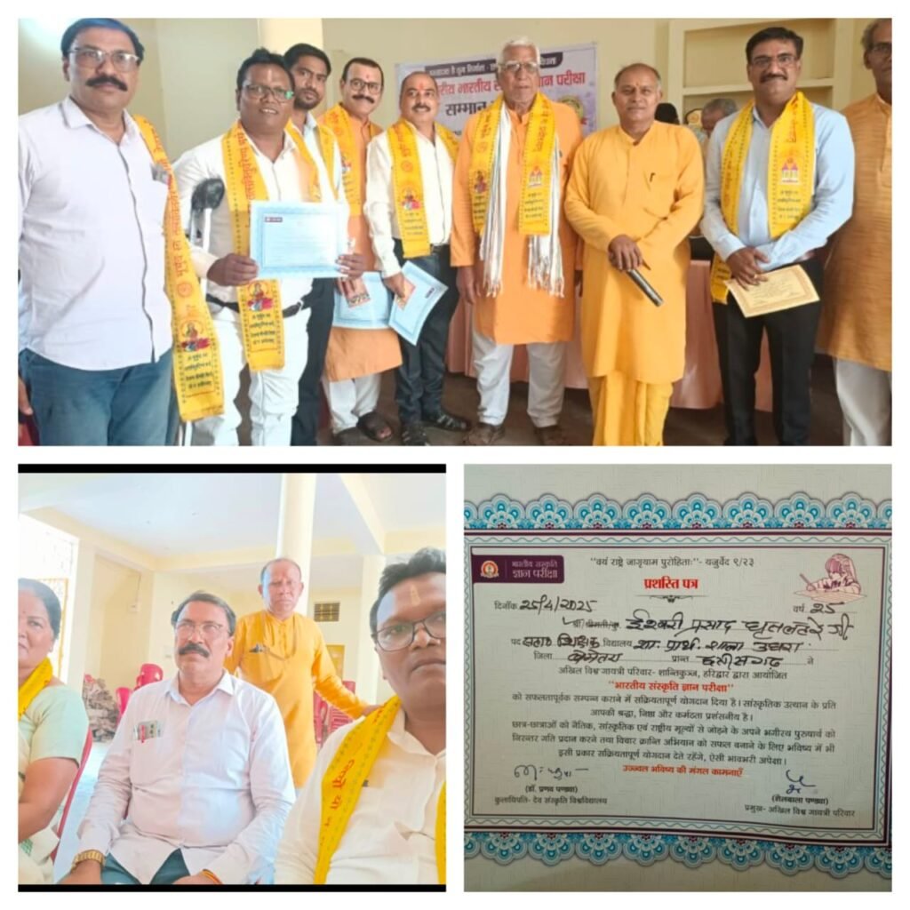 कल दिनांक 25 ,4 ,2025 दिन शुक्रवार को जिला स्तरीय भारतीय संस्कृति ज्ञान परीक्षा सम्मान समारोह का आयोजन गायत्री मंदिर परिसर बेमेतरा में किया गया... Read More