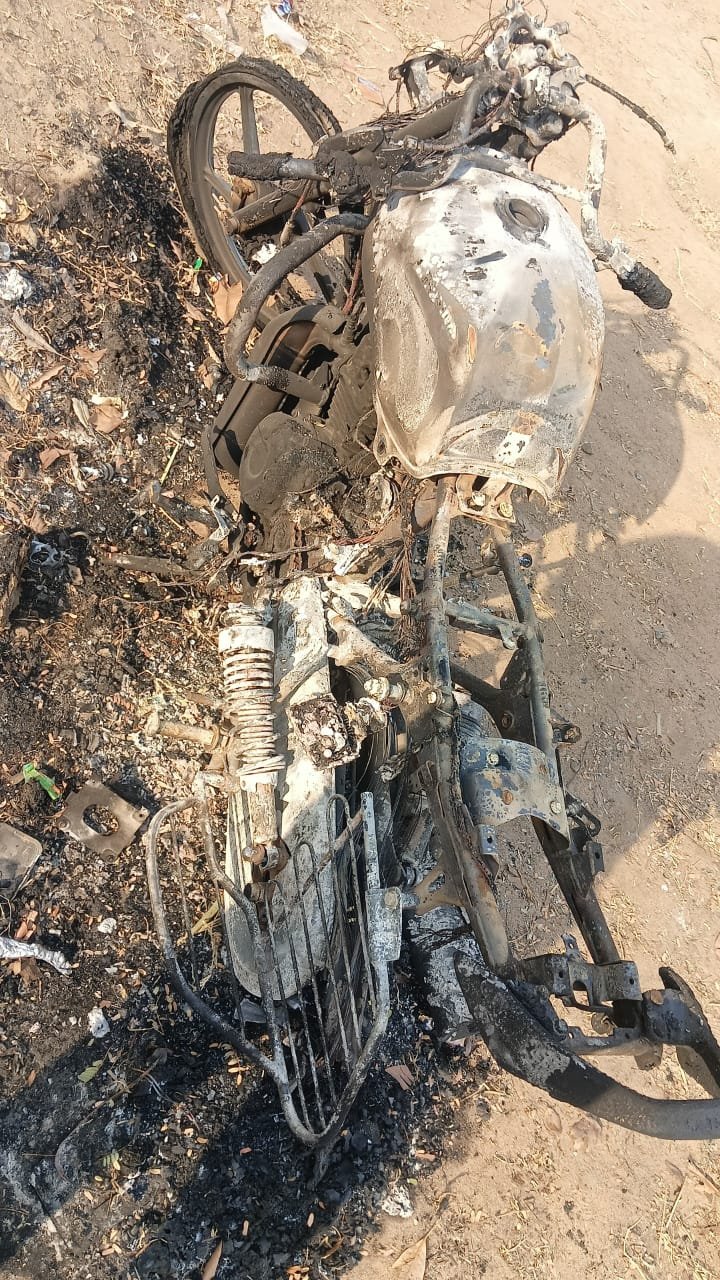 खडी बाइक पर लगी आग, जलकर खाककुसमी थाने में दर्ज हुआ मामला,जांच में जुटी पुलिस