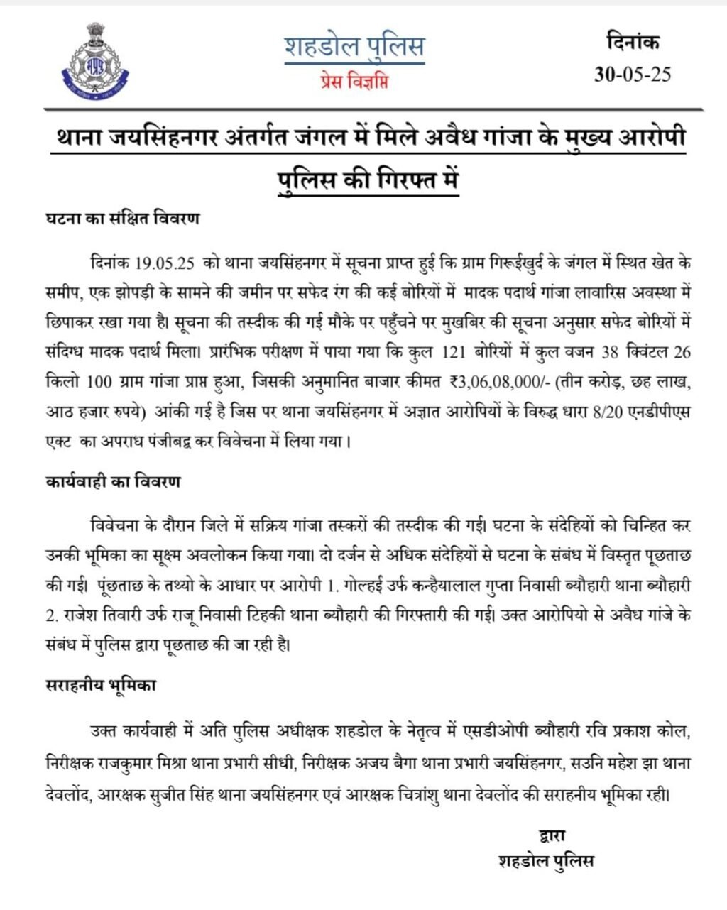 जयसिंहनगर/शहडोल/मध्यप्रदेश से जयप्रकाश पाण्डेय की रिपोर्ट, इण्डिया न्यूज़ दर्शन