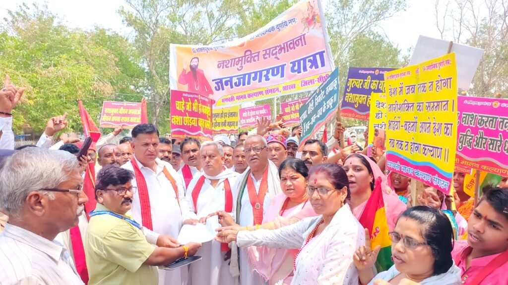 भगवती मानव कल्याण संगठन ने क्षेत्र जिलेभर मे बिक रहे अवैध शराब व गांजा नशीली सिरप के बिक्री पर प्रतिबंध कर कार्यवाही करने हेतु शहर मे रैली निकालकर सीधी कलेक्टर एसपी को सौंपा ज्ञापन,