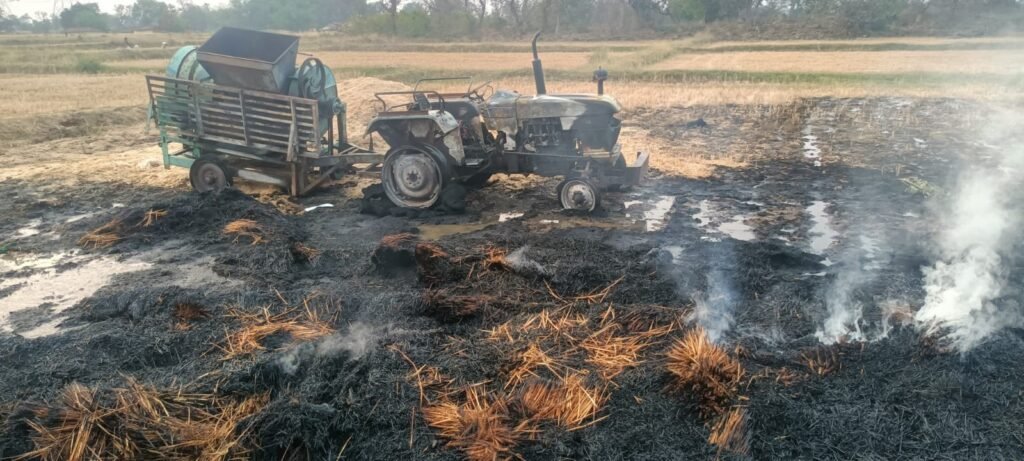 खलिहान में लगी आग फसल समेत जल गया ट्रैक्टर थ्रेसरआधा दर्जन किसान हुए आगजनी से प्रभावितफोटो