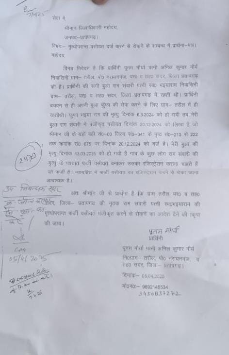 संपत्ति को लेकर मची होड़, वसीयत के नाम पर बड़ा खेलस्थान मांधाता कोतवाली क्षेत्र ग्राम सभा तरौल