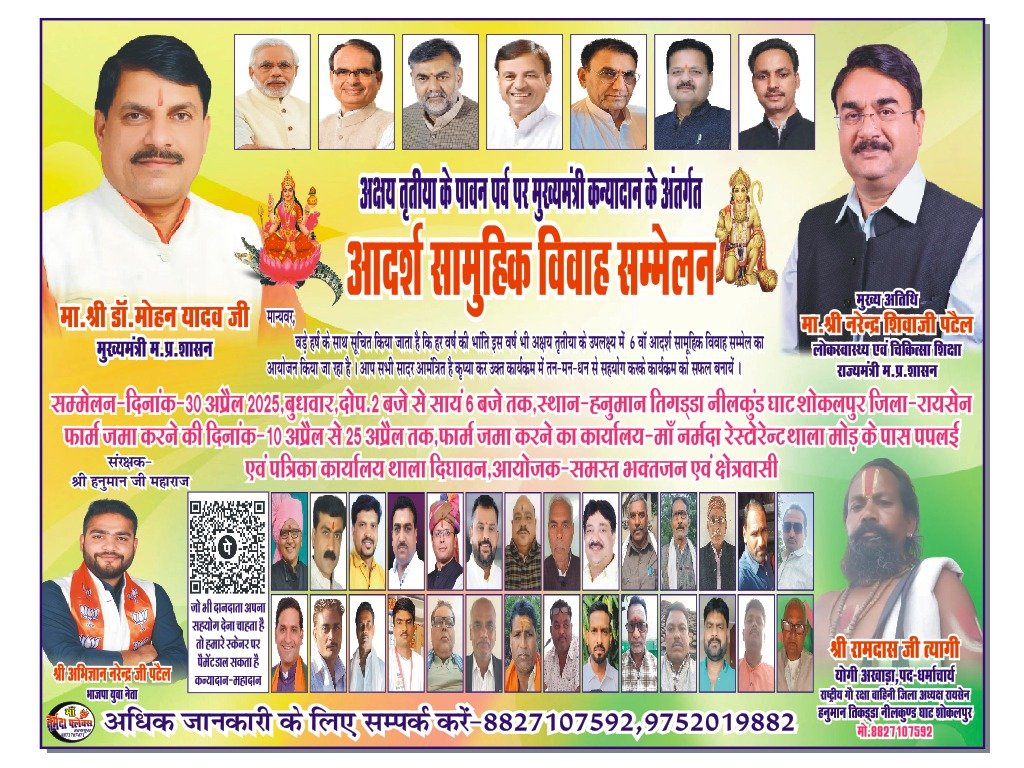 नर्मदा तट शुक्लेश्वर गुरु चरण समाधिमुख्यमंत्री कन्यादान विवाह सम्मेलनकी तैयारी